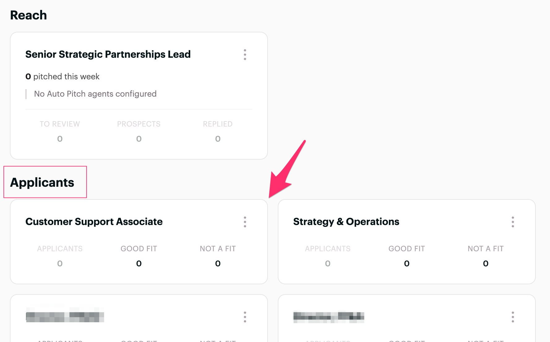 - On this page, you should see a section for 'Applicants' where your ATS linked projects live.
