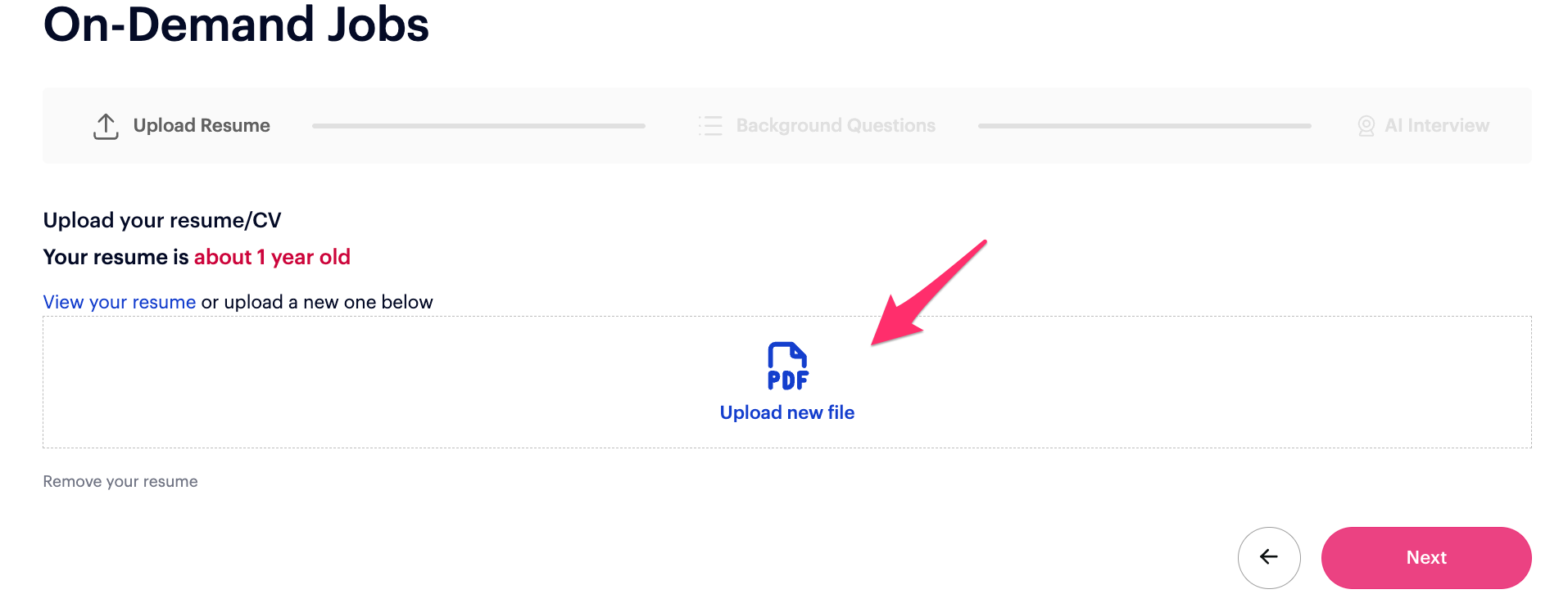 Upload your resume by clicking 'Upload resume'. If you have any trouble, please click here for advice on how to format your resume.