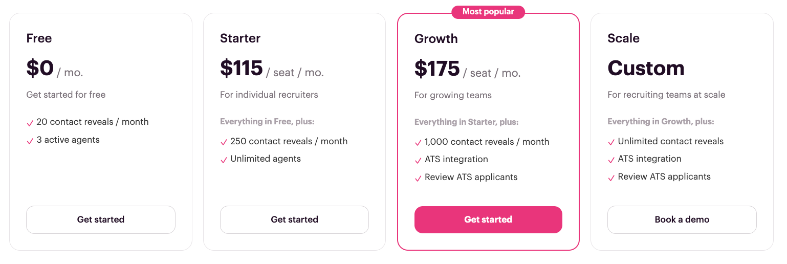 There are no onboarding calls or setup fees. Describe your role in plain English, launch an agent, and get your first candidates in under 2 minutes.