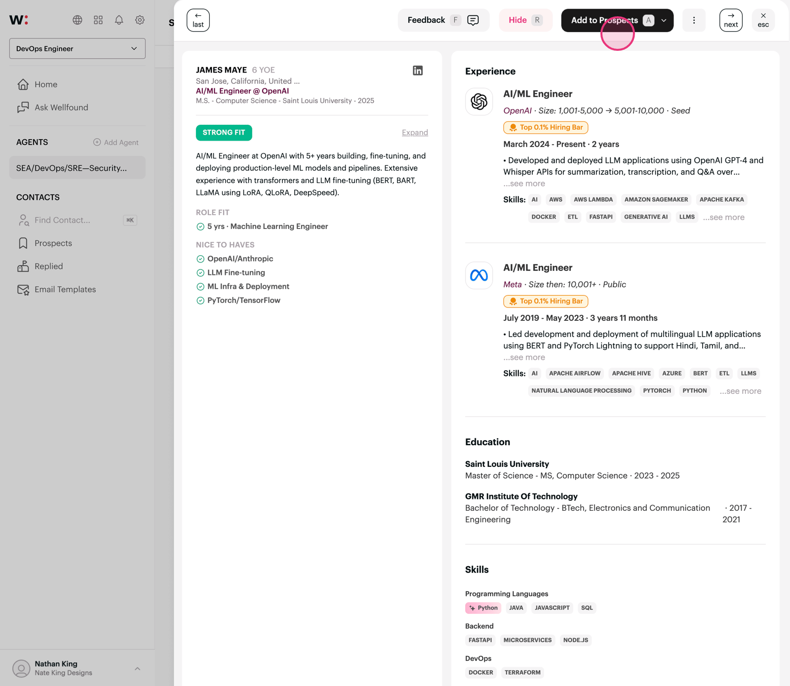Your 'Prospects' page is where you manage and move candidates forward. We'll walk you through that in the next demo.