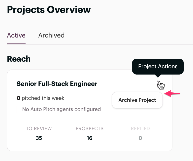 When a role is filled or a search is no longer active, you can archive the project to keep your workspace tidy.