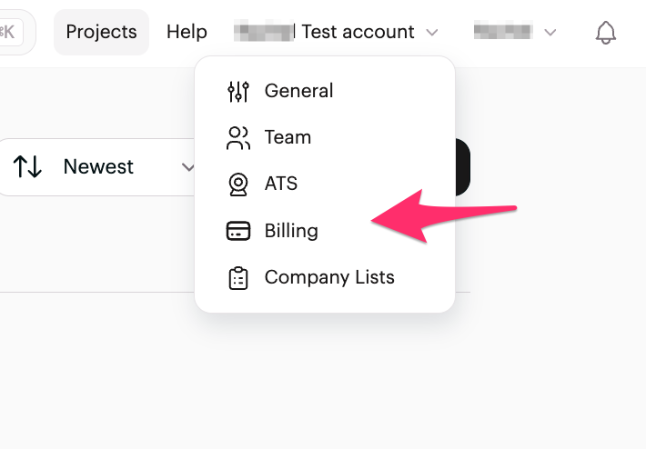 The number of active AI sourcing agents and contact reveals available to you depends on your plan. To view or upgrade your plan, go to Settings → Billing from the Account dropdown in the top right corner.